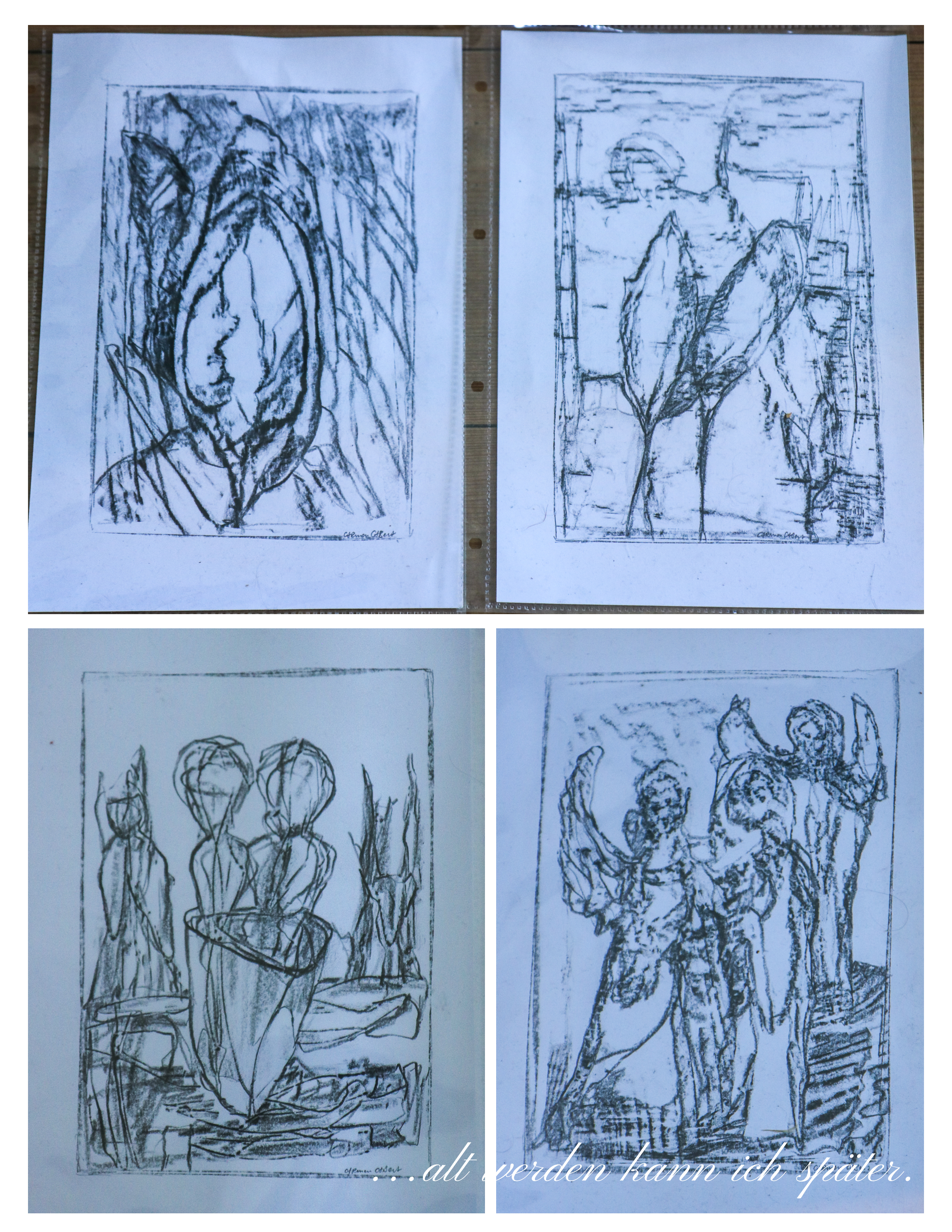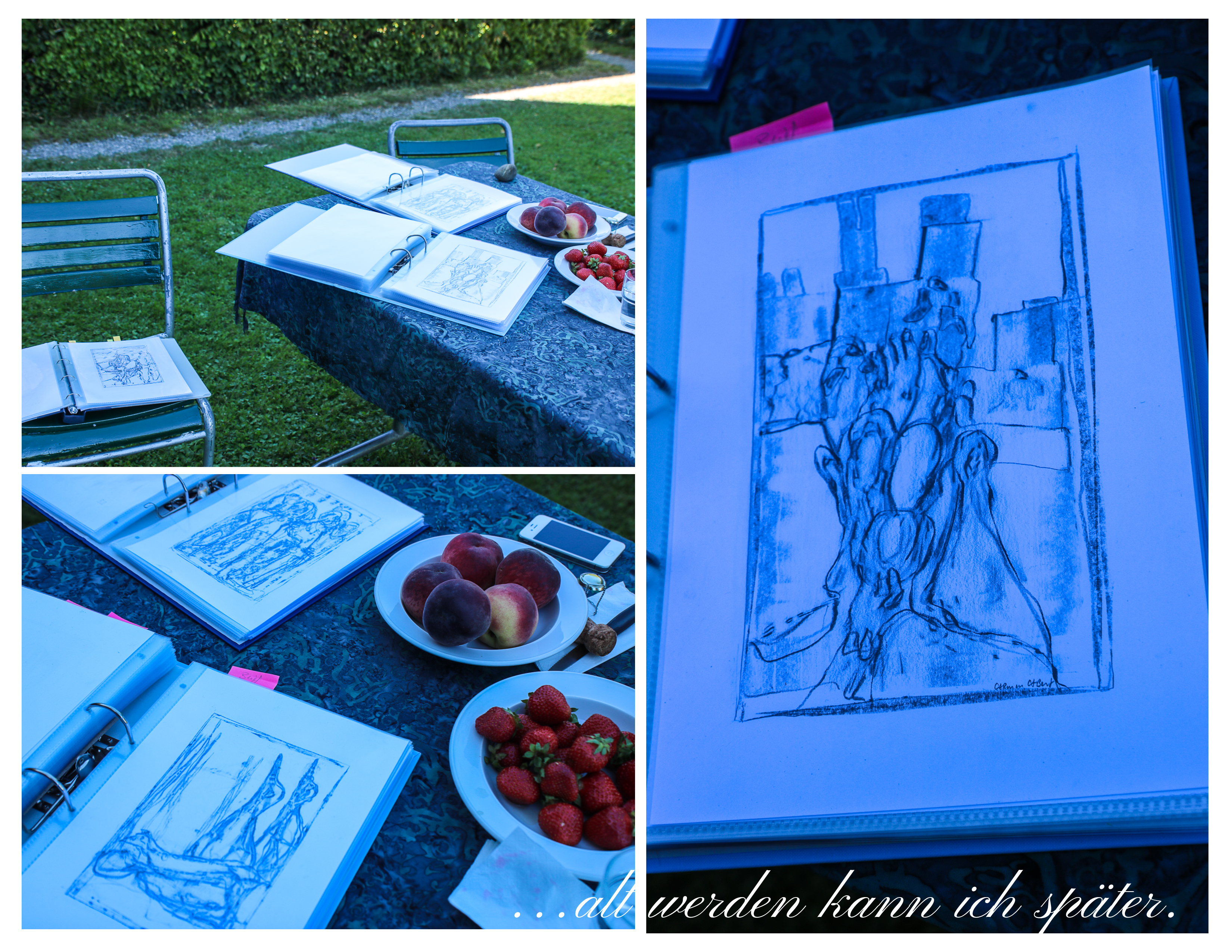 Wir sitzen im Garten und ich schaue mir Carmens Arbeiten an.