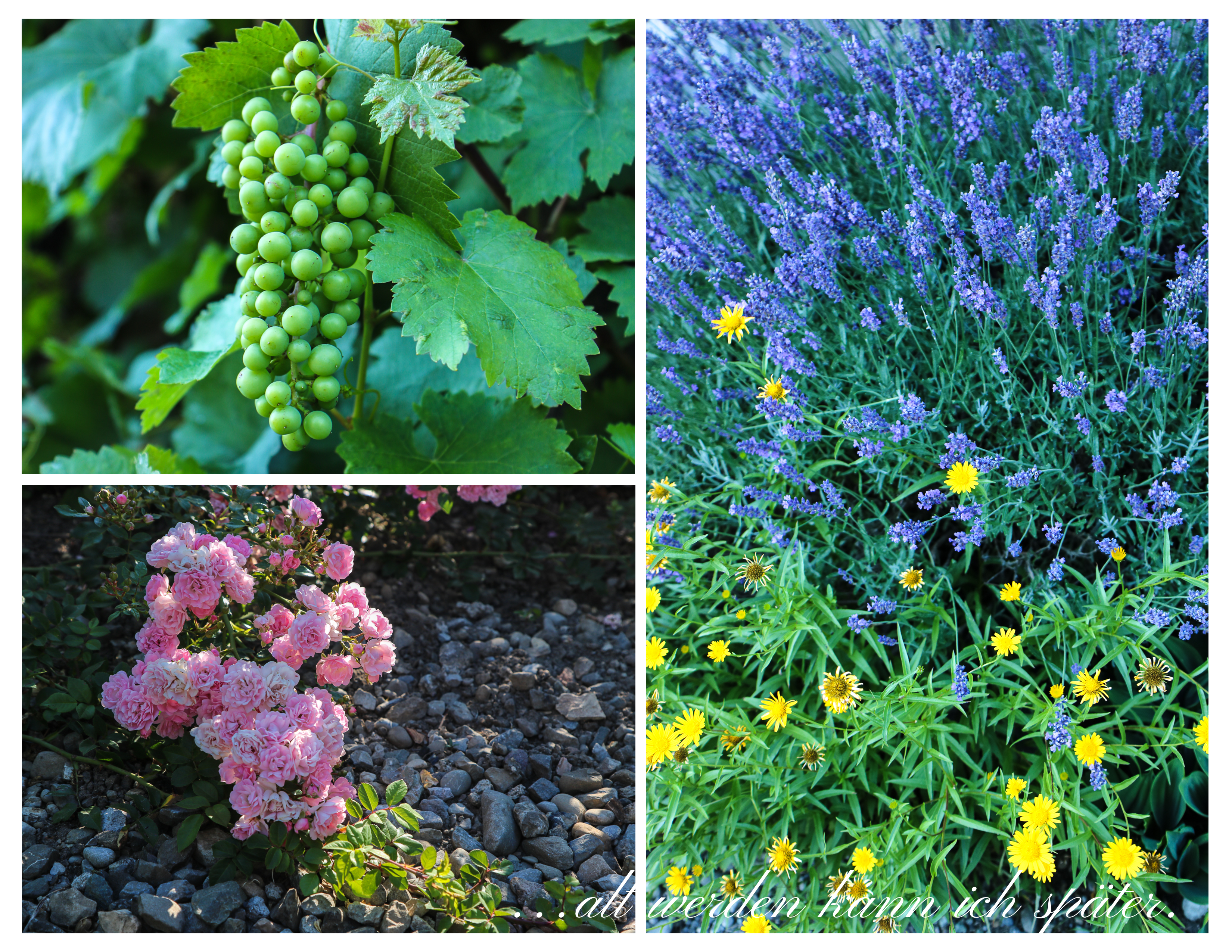 Die Pfingstrosen waren längst verblüht, aber so will ich sie nächstes Jahr auch stabilisieren, alte Rebstöcke zu finden wäre toll.