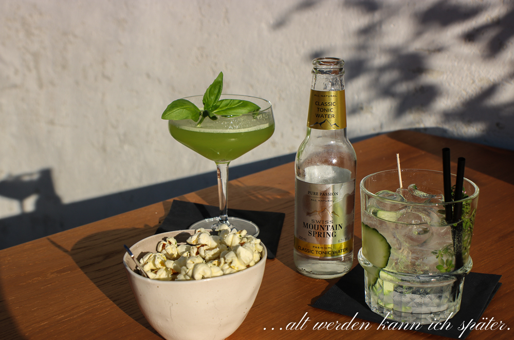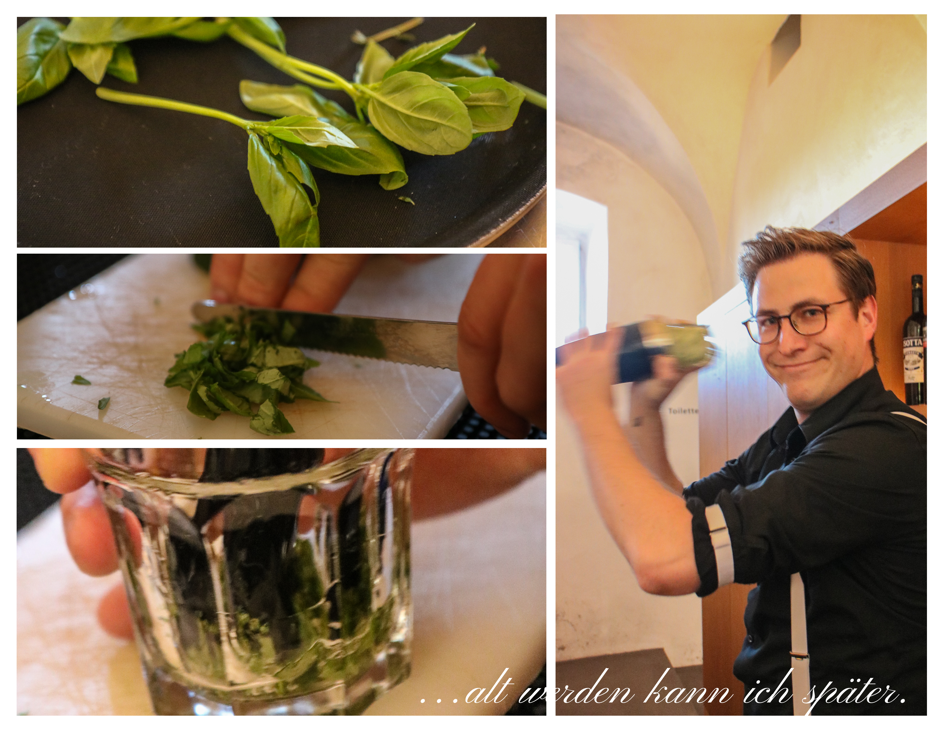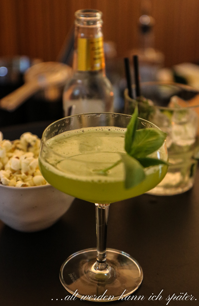 Carmen bekam einen knallgrünen Gin Basil Smash.