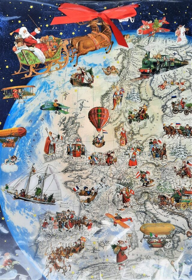 Ihr Türlikalender zeigt Nikoläuse und Weihnachtsmänner, die typisch sind für das Land, in dem sie ihre Nikolaus-Aufgaben erfüllen. Denn diese wie auch ihr Outfit sind landestypisch. Bestimmt hört ihr Jüngster gern zu, wenn sie ihm von diesen Ländern erzählt.