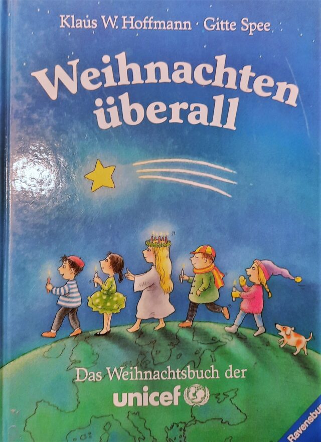 Ich leihe meiner Tochter das UNICEF-Buch aus, das ich 1989 meinem Sohn geschenkt hatte.