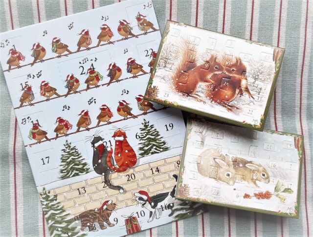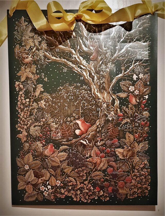Meine jüngste Tochter bekam einen Türlikalender mit vielen Tieren und mein Sohn eine edle Variante, die mich an Tapeten von William Morris erinnert.