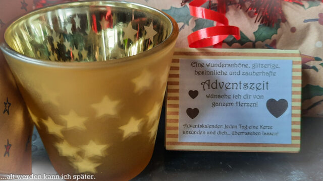 Ich werde im Advent jeden Morgen bei einem warmen Kerzenlicht einen lieben Gruss von meiner wunderbaren Tochter erhalten, der mich durch den Tag begleiten wird.