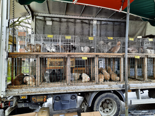 Auch Tauben werden gekauft und Kaninchen und Zicklein. Ich rede mir ein, dass diese alle Zuchttiere sind – und nicht in der Pfanne landen.