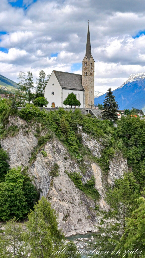 Ich besuchte Scuol. Der Name Scuol stammt vom lateinischen scopulus «Klippe» und bezieht sich auf den Standort der Kirche San Geer.