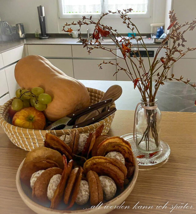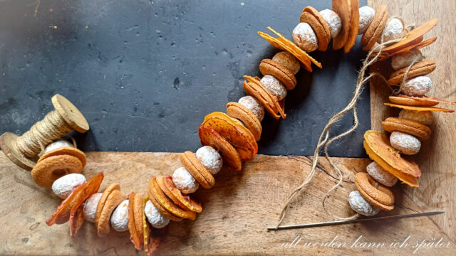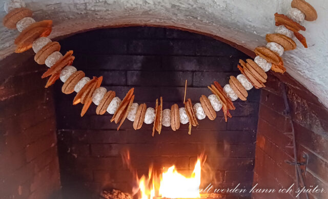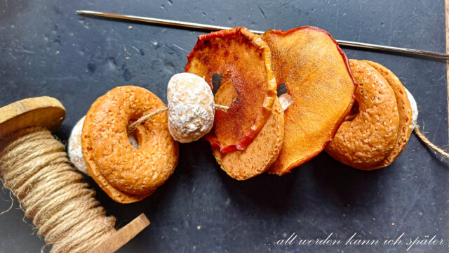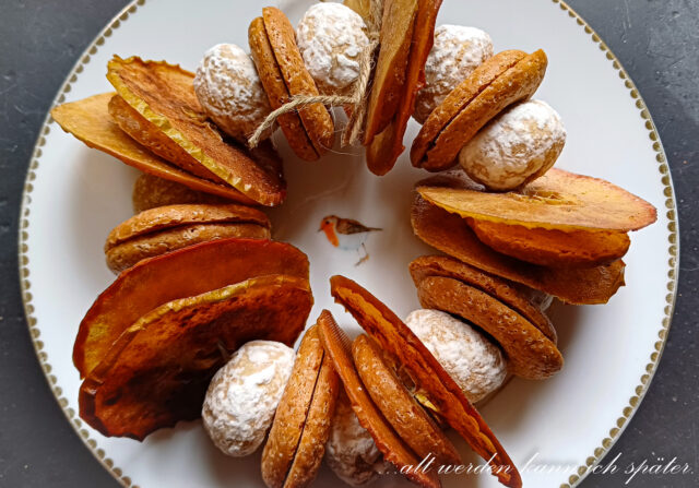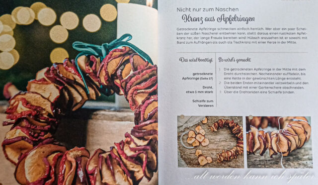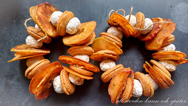 Ein Apfelkranz ist hübsch, aber es braucht dazu eine Menge Apfelringe. Also dachte ich nach, was bei uns zu Vorweihnachten gehört.