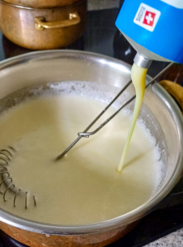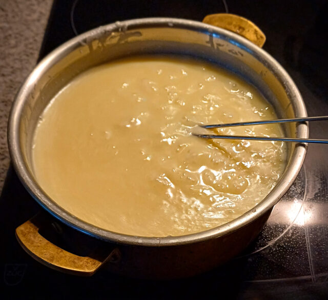 Die warme Masse kann mit Vanille, Honig, Schokolade, Whisky, Kaffeepulver und weiteren Zutaten aromatisiert werden.
