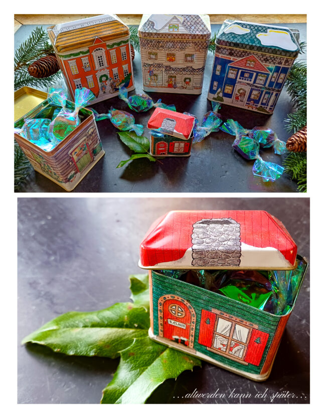 Blechbüchsen sind immer eine gute Lösung für das Aufbewahren und Verschenken von süssem Konfekt.