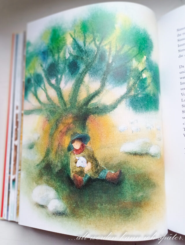 Ebenso ein Weihnachtsklassiker ist “Die vier Lichter des Hirten Simon“, illustriert von Marcus Pfister.